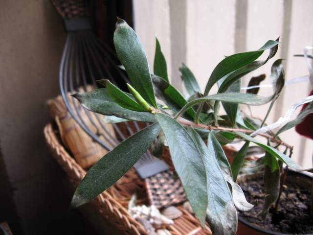 Sad ponovo gledam slike i upoređujem. Moje grančice su kao ove u boci kod VikideMarko (mislim nije vrh baš isti, ali izgled i raspored listova je isti). Ako je to ista vrsta kao Aeskin kalistemon  onda je razlika u izgledu posledica starosti biljke