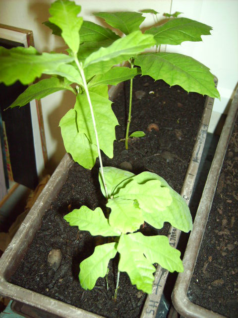 Da bi to izveo na najbezbolniji mogući način bukvalno sam čitavu kocku zemlje oko korena izvadio ašovom i preneo u saksiju. Misleći da je sve dobro urađeno ponosno sam odneo moje hrastiće kući. Odabrao sam im sunčano mesto na balkonu.
