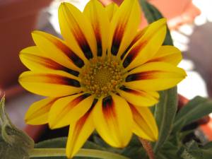 evo danas mi se na narancastoj gazaniji (koja je imala i taj jedan crven cvijet) pojavio jedan total zuti i sa kroz drukcijim prstenom u sredistu..svasta:)