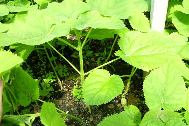 List prošlogodišnje paulovnie, u proljeće orezane do razine tla.