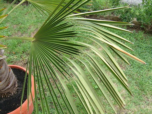 Onda, na proleće posadi svoj jedinstveni trahi u baštu, ali mu stablo dobro zaštiti od jakih, dugotrajnih mrazeva. Ako si emotivno vezan za tu palmu i ona ti je obeležila detinjstvo, ne bi bilo lepo da je izgubiš zbog jake zime. Mislim da ovde niko ne može sa sigurnošću da tvrdi da ona lako opstaje u ovom klimatu. Ja sam izgubio 13 komada a neke su bile visoke 4 metra. Nikad ih nisam štitio ali nije mi bilo sve jedno kada sam ih izgubio. Sada imam 4 napolju i jednu u posudi, a kao rezervu imam ovogodišnjih 9 nainitalki, 9 mazarijevki i 1 wagnerianus.