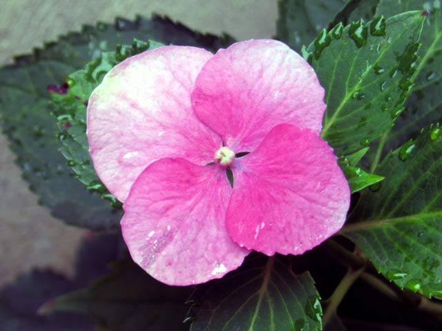 Izrasla je jedna čudna hortenzija koja ima ne onako uobičajenu gomilu cvetića sakupljenih u loptastu cvast već jedan veliki cvet.