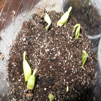 Dohvatila sam sa drveta grancicu sa lampionima-tad jos nisam znala sta je to dok mi niste rekli-te sam semenke stavila u zemljumozda u decembru-drzala u toplom, pa u hladnoj verandi i sad kad sam ih unela brzo su proklijale-sve slucajno...................