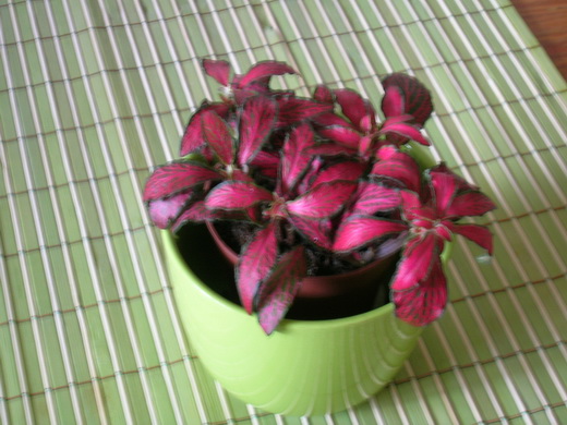 Znam da je hypoestes... njega su u cvećari prodavali kao fitoniju. Na neki način smo off topic, ali, pošto često cvećari prave zbrku, nije loše da ljudi ovde vide kako izgleda fitonija, a kako hypoestes.
