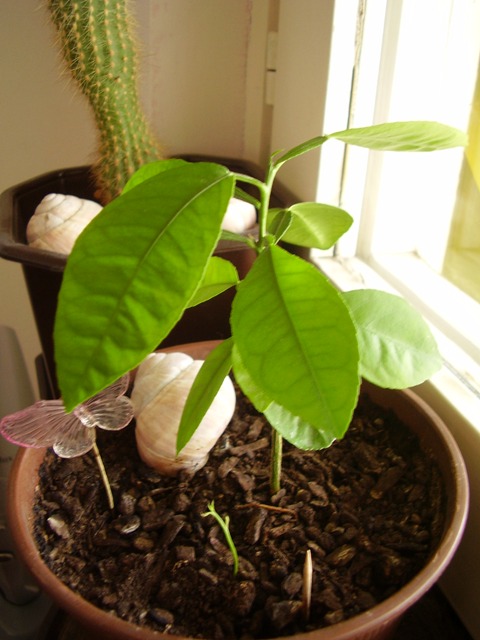 Kao i nekima ovde, i nama je limun izrastao iz semenke. Jednog dana sam videla da nesto raste pored mog kaktusa. Prvo sam mislila neki korov, ali mi je muz kasnije priznao da je zabadao u zemlju semenke pomorandze, mandarine, limuna... sta god da je pojeo, pa se na kraju nesto i primilo. Nikad nismo saznali koji je agrum bio u pitanju jer taj izdanak nije preziveo (kao ni dva naredna), ali se moj muz zato "primio" i poceo da sadi semenke po svim saksijama. Na kraju smo dobili jedan limun i jedan grejp, koji zasad hvala Bogu lepo napreduju.