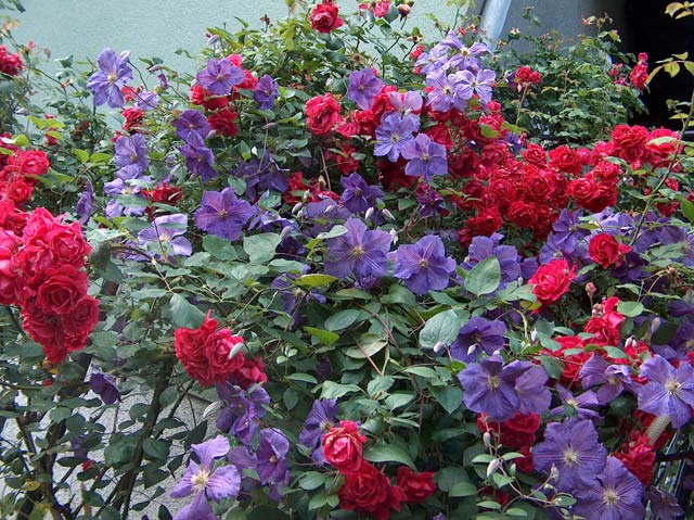 jel znate da su nam ljudi znali stati pred kućom zbog tog starog bračnog para  najme,moja svekrva kaže da je ruža posađena kad se kuća gradila,60.i nekoje god,a i klematis nije navodno puno mlađi....kuću smo prodali,a razmišljali smo o nekim kombinacijama seljenja ovo dvoje...ali bilo je prekomplicirano,kidanje betonskih ploča itd....evo vam još dvije slikice da vidite malo cijeli "zagrljaj" i ova druga slikica...ovaj grozd ruža