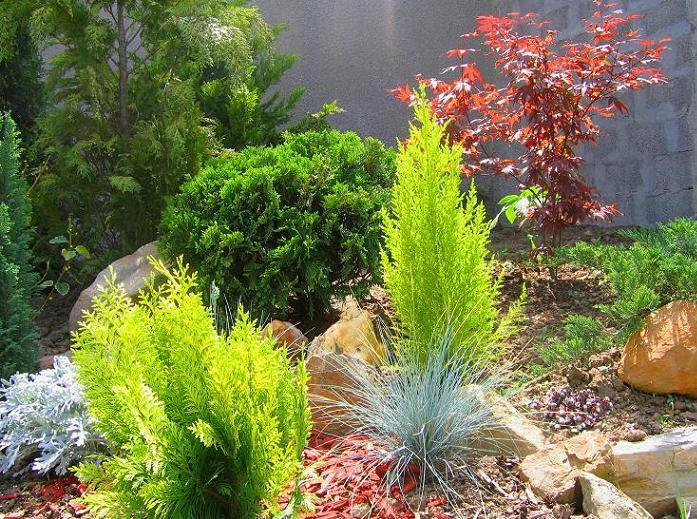 -da ne mesam egzoticne i ove nase obicne domace vrste-tako da cetinari i liscari idu na jedan kraj a palme,oleanderi i ostale egzoticne cvetnice na drugi kraj...
