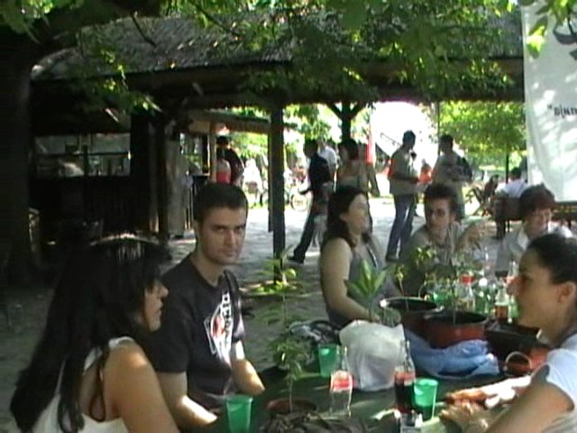 A kako je bilo- zamislite 10tak ljudi , koji se tek upoznaju ,mirnih koji razmenju savete, sede , piju sokic, ..e to NISMO BILI MI ...mi smo oni pored  u koje su svi buljili dok su pokushavali da ruchaju...Stolovi zatrpani biljkama, ono shto nije stalo bilo je na zemlji, po dzepovima, kod boljih polovina...
