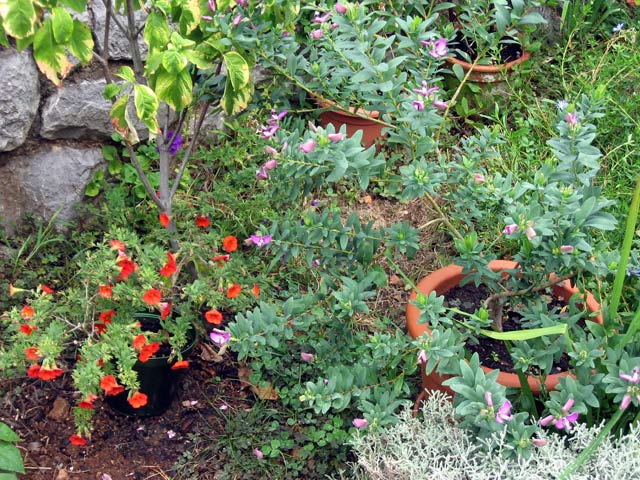 Evo ima i kod mene nešto cvjetajućih iako je vrt u globalu ove godine prilično bezvezan, nikako za prikazat u krupnim planovima. Nešto sam kriva ja jer me nije bilo pa biljke nisu dobivale dovoljno vode i prihrane a nešto su krivi i građevinski radovi i to dvoje u kombinaciji....fuj....