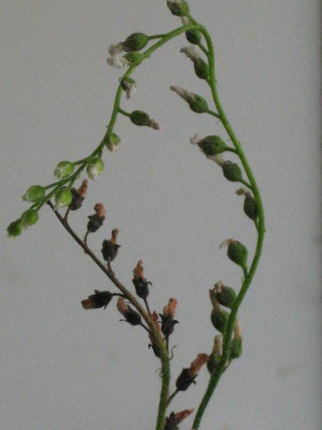 I jedan od cvetaka jedne moje droserice je u tom stadijumu. Izbacila je tri cveta; jedan je skroz suv i seme ispada, drugoj je stabljika zelena a cvetići crne, dok je poslednja sveže precvetala. Evo i kao izgledaju.