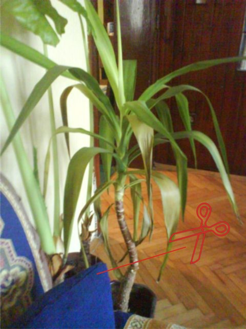 Možda ovo nekom pomogne ... Evo šta se može dobiti od gornja tri lista i nešto malo stabla juke koju sam davio 6 meseci u vodi. Rekli su mi da je bacim! Odlomio sam vrh i to rukom, poskidao sve uvenule listove, pa u vodu na oko 3 sedmice i u novu zemlju ... pa na policu kraj prozora ... zalivana na 10 dana +-2 dana, orošavana na 4-5, redovno dohranjivana na 2 sedmice itd. Prva slika je fotografisana 20'ak meseci pre druge.