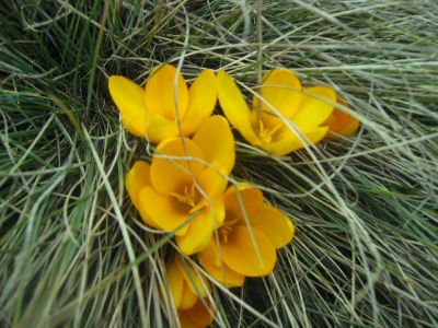 kod mene su patuljasti narcisi vec napravili pupoljke, lale poterale listove, a evo malo i krokusa.