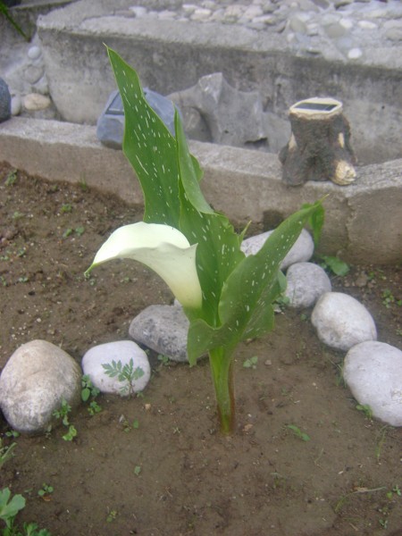 Prvi cvijet na mojoj bijeloj kali.Crvena i žuta jos ni u tragu za cvjetanje.