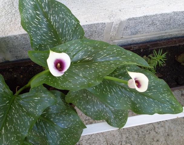 evo moje kale (Picaso)... kupljena je pre 3 godine, preko flore i od jedne male krtolice sad imam preko 8. za sada je cvetala sa 4 cveta, ali ima jos nekoliko stabljika koje treba da izbace cvet. primetio sam da iz jednog ''okca'' na krtoli izbaci 2-3 lista pa onda cvet. sada je i bela sa talasastim cvetom isterala mali pupoljak, a ove godne sam zasadio i zutu, koja ima crnu sredinu.