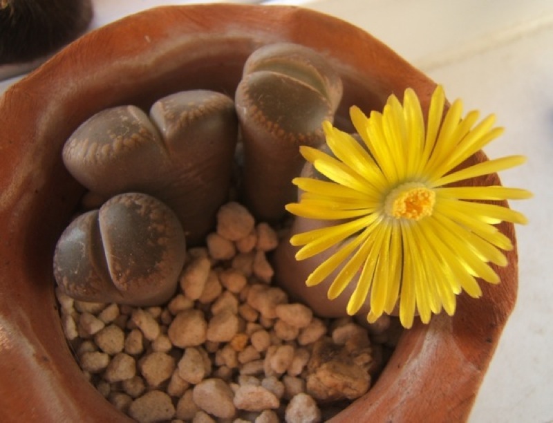 Da citiram Djura iz TLN :"Na moje opste iznenadjenje" danas mi procvetao jos jedan litops  Zahvaljujuci ovom prekovremenom suncanom periodu ovaj se otvorio prilicno brzo u odnosu na prethodni, a, ako Bog da da ovo lepo vreme potraje jos malo, nadam se i cveticima conophytuma