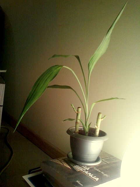 Imam dva tzv. Lucky babmusa!!! Jedan sam dobila pre godinu dana, a drugi pre pola godine! Ovaj stariji je bas veliki (dugacak)... imao je samo jedan izdanak sa listicima... a onda je izbio jos jedan! A ovaj mladji je dosta manji i ima samo jedan izdanak! Drzim ih u neprovidnoj vazi, u dnevnoj sobi sa dosta svetlosti, ali ne direktne, i svakih nedelju dana samo dolivam vodu...i to ovu sa cesme!!! Nikada nista im nisam dodavala...a primecujem da u poslednje vreme bas dobro napreduju! Novi, lepi zeleni listici koji rastu u vis im bas daju izgled srecnog bambusa!!!