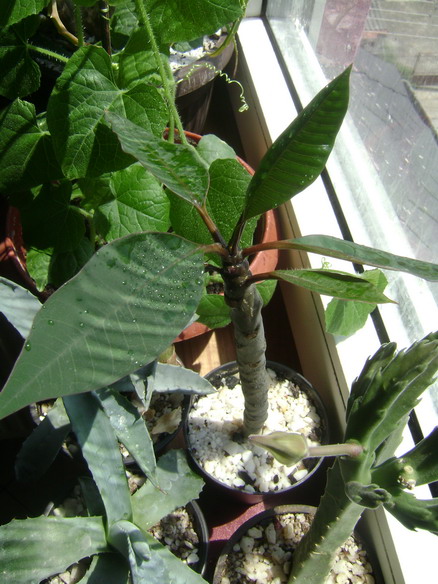 biljka je prilicno smesna, nego sam ja srecom, mnogo visoka, pa onda "hvatam" dobre kadrove  i moja plumerija je podeblji stap, ali recimo da sad ima dobre osnove da napravi i krosnju.