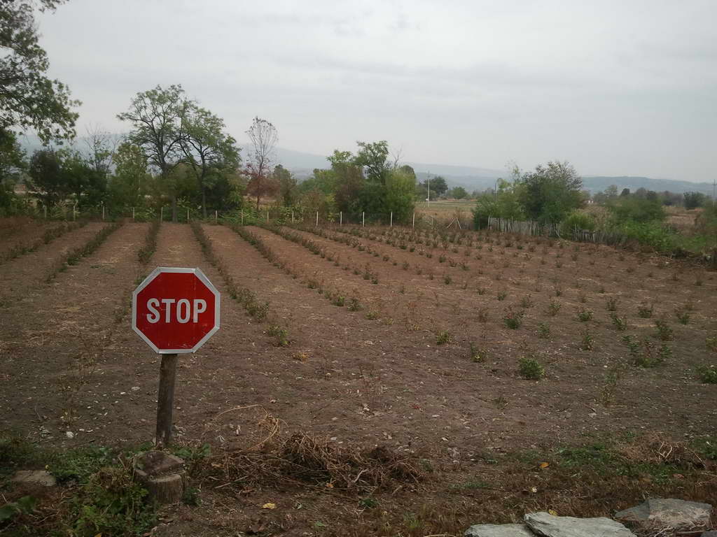 Evo da se javim i da odgovorim na sva pitanja i da se zahvalim na pohvalama    S obzirom da mi je zasad u dvoristu, tj svakodnevno ga gledam, trudim se da ga odrzavam kako najbolje znam i umem. Korova nema jer se frezom prolazi i medjuredno i izmedju redova gde su biljke na 1.75 m jedna od druge. Kada se prodje frezom ostanu kocke oko svake sadnice ( iz aviona to izgleda kao sahovska tabla ) i onda se svaka kocka rucno ocisti od korova tj ostane samo sadnica bez ijedne travcice. Nije to neki preveliki posao kad imas volje i verujes u to kao sto rece Vojvoda    Ovde ima 500 sadnica na 25 ari i ovog leta su rucno navodnjavane tj. pravio sam vade pa dovodio vodu preko motora. Pre par dana sam kupio sistem KAP PO KAP sa lateralima i ubodnim kapaljkama ( za svaku biljku po kapaljka) tako da od sl. proleca mnogo manje muke i mnogo vise vode ce biti. A znak STOP je stajao u mom podrumu 15 god. ( nestasluk iz detinjstva ) i konacno je nasao svoje pravo mesto    mada nisam prosao bez kritike roditelja tada    Hvala jos jednom na pohvalama