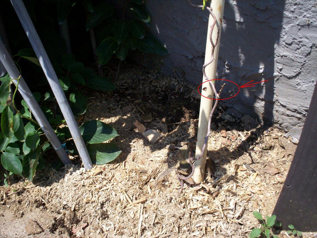 Ja sam isto probao margotiranje kivija (arguta). Jedan mi se osusio posle 15 dana a drugi je lepo krenuo (tri meseca) i od vrucine odbacio lisce , sad izbijaju novi mladari (oznacio sam crveno na slici). Margotiranje sam odradio na sledeci nacin: skinuo sam koru u krug oko stabla, isekao vrh i dno flase i navukao na margotirano mesto, napunio zemljom i sve to polozio u zemlju. Bolji prijem bih imao da sam to uradio sa debljom granom. Probacu sledece godine...