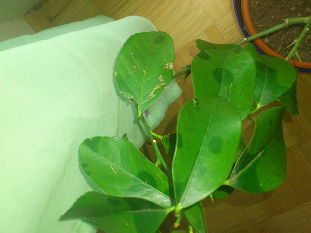 redovno ga zalijevam i poceo sam mu prije 10 tak dana dva puta sedmicno davati zeljezo i kalcij naravno orginalna bocica iz prodavnice za citruse...no medjutim primjetio sam jucer da na listovima...koji su svjetlo zeleni...tamne zelene okrugle povece fleke...