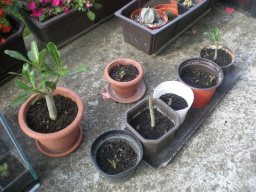 Trenutno sam u fazi ,,sredjivanja"adeniuma . To podrazumeva presadjivanje...orezivanje,izdizanje iz supstrata...S obzirom na kolicinu biljaka zaista dobar posao  Veoma sam zadovoljna rezultatima-stavicu slike ovih dana.I moji adeniumi kasne sa cvetanjem ove godine-razlog isti hladan maj i juni,ali veliki broj njih ima pupoljke  Po mojoj proceni bice tu dosta cvetova