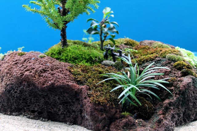 Nedeljnom šetnjom po jednom rasadniku ugledah veliku stenu vulkanske lave, dimenzija 60 cm x 40 cm, debljine oko 30 cm, a težine 14 kg, (Sl.1.) Sekund mi je trebao da vizualiziram svoj budući rad te je odmah kupih. Lava dobro zadržava vlažnost, tako da neću puno brinuti oko zalivanja, puna je minerala, što je opet jedan plus, porozna što će omogućiti dobru prozračnost i kretanje korena i u njenu dubinu...., a i sam njen izgled je budi volju za prirodom.