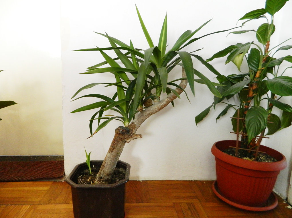 Evo moje juke. Ova mala je ona što je izrasla od slučajno otkinutog dijela korijena.  A i kod ove velike u saksiji niče mlada.