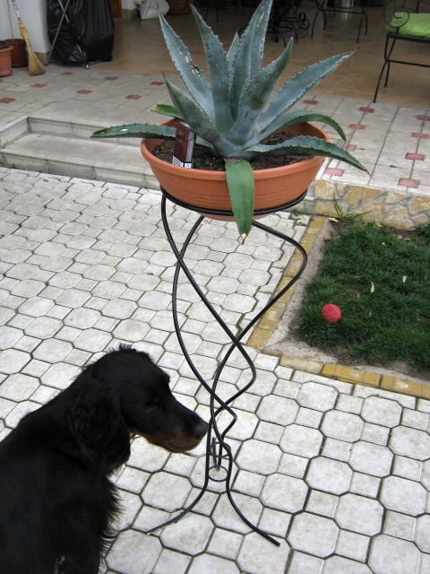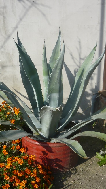 Ovu imam plan do proleca drzati na hladnom i svetlom  dok joj ne 'napravim kucu ' .Ici ce u 'cepter fontanu ' ( tako je zove MM zato shto u mojoj fontani nece biti vode nego agava  ... danas smo je prebacili kamionom  ( troica odraslih ljudi je vuklo ,guralo kolicima  ) Uzasno je teshka ( posadjena u najveci kotlic  ) i nije ishla u visinu koliko bi htela nego u izdanke sa strane