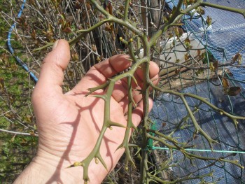 Seces od zemlje pa duz stabla ali ne skroz do vrha . Tvoja sadnica mislim da je jos mala i nema trnova . Jovana znam i nisi pogrsio sto si od njega kupio. Ima on jos mnogo zanimljivih biljaka koje nema po Srbiji. Na ovom forumu je pod imenom Vindesel zmaj.