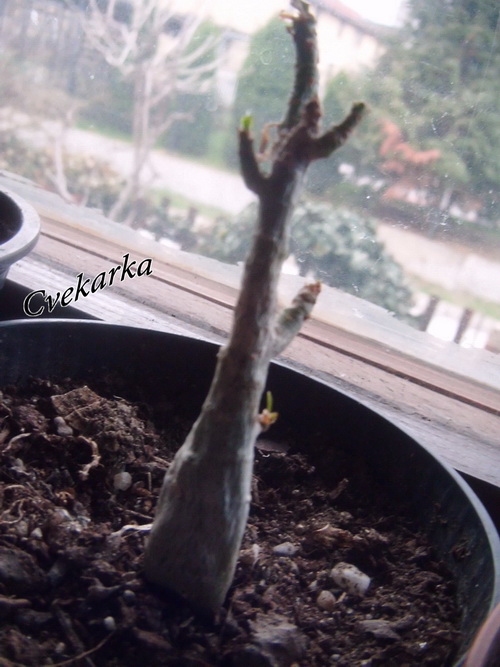 Nadam se da je ste dobru zemlju napravili, tj .da nije samo neka kupovna nega da ima dobru drenazu... Ova kupovna zemlja cesto moze da se napravi kao blato i da drzi vodu jako dugo a koren ne moze da dise pa nije dobra za adeniume, tj. za bilo koje sukulente.