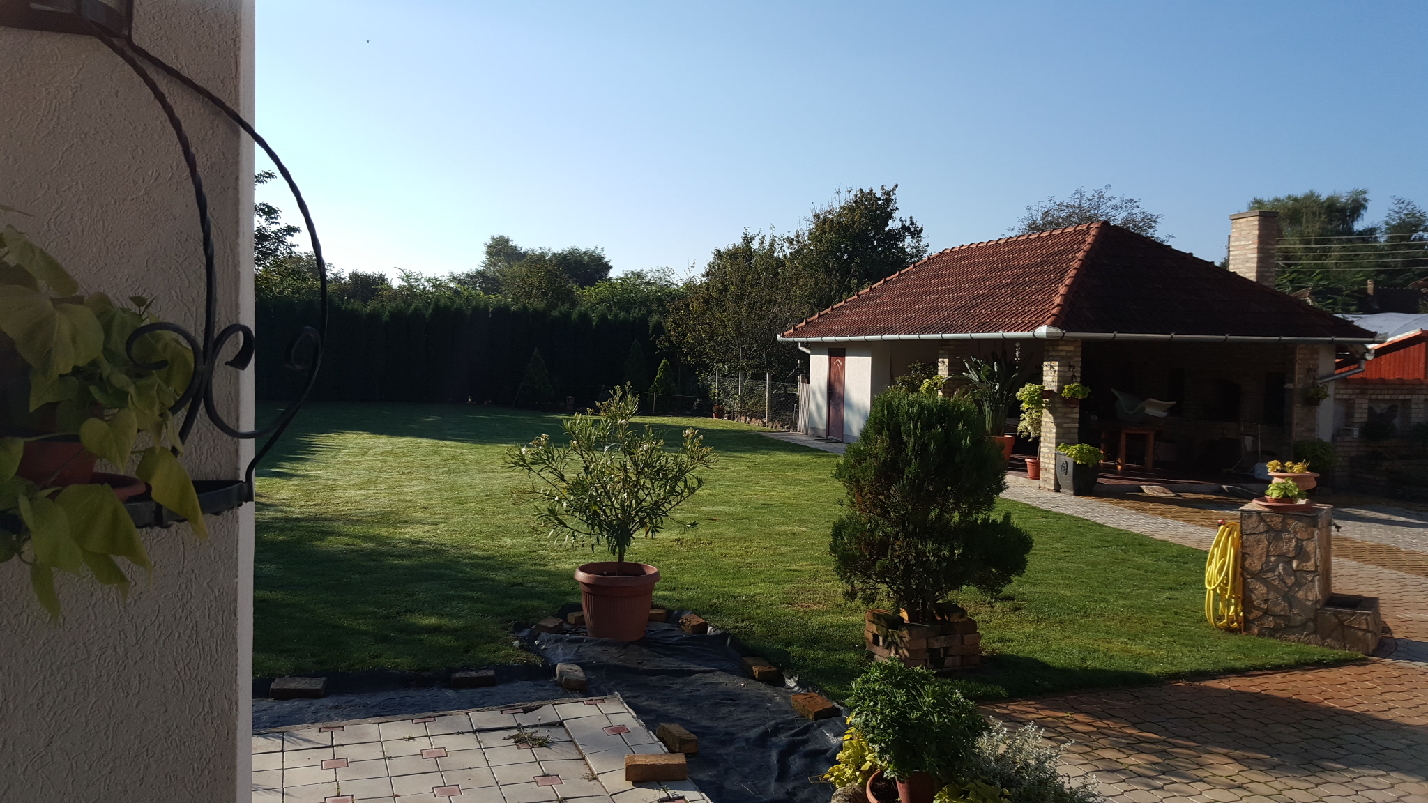 Prekljuche je pokoshen travnjak ( sada ga ostavljam neshto duzim ), zalivanje je automatsko.Zanemari detalje ( it' s still work in progress  , FaLi i kamenja i svashtaneshto  neke smo sadnice kupovali i do sada ih drzali u saksijama , chekamo da maLko zahladi pa da ih zauvek nastanimo, da uplatimo loto za 8 m3 kamenja i ostalo ....