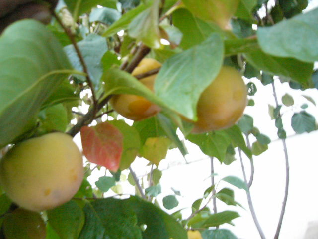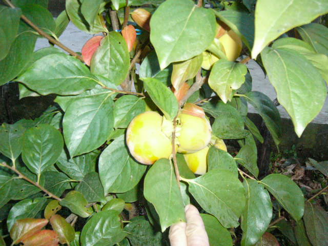 Ove godine jos nije bilo mraza, pa sam ostavio jedan Fuyu na drvetu da umekne i naravno puno sladji od onih koji se pojedu tvrdi...