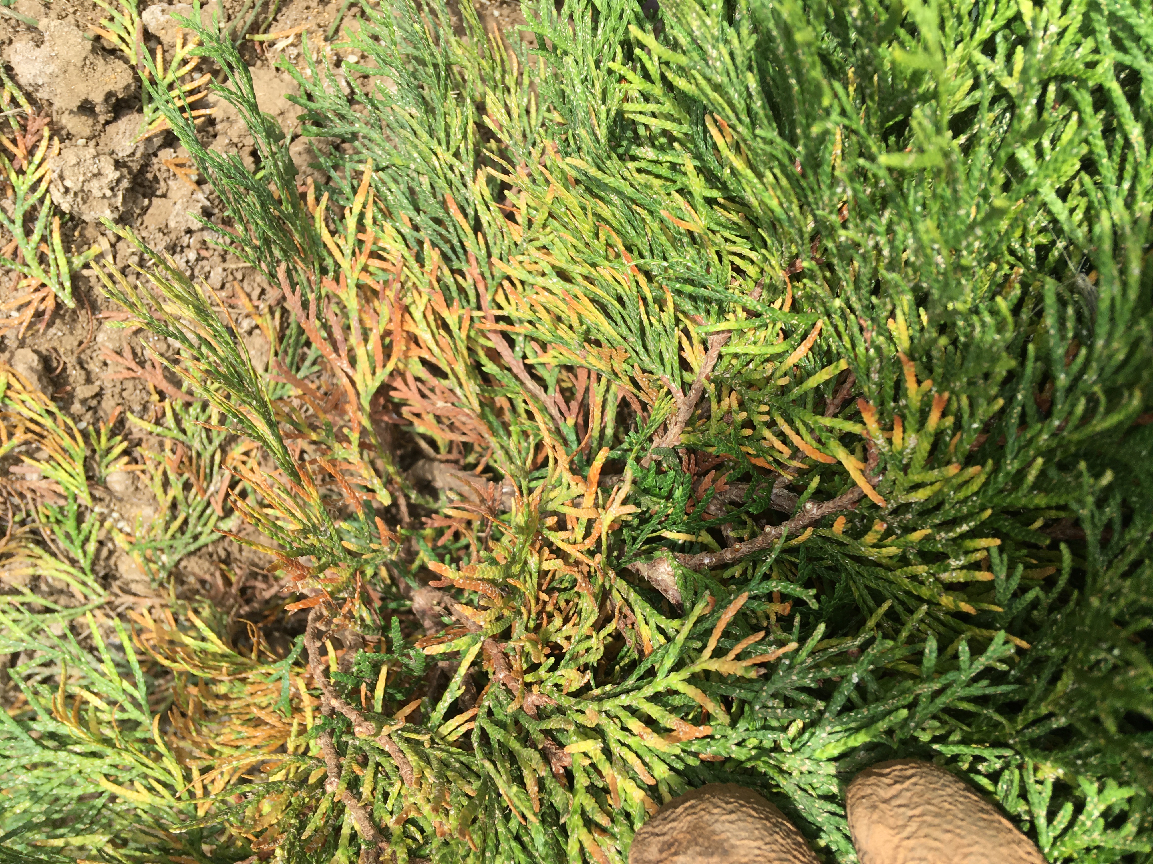 Поново имам проблем са тујама, молила бих за помоћ јер не знам шта би ово могло да буде, нисам приметила никакве напасти на њима. Унутрашњи део и све више иде ка спољеим деловима туја, знам да је то нормално иначе на прелазу из лета у јесен али ово је превише. Молим ако неко види објаву да ме посаветује. Слике се налазе испод.
