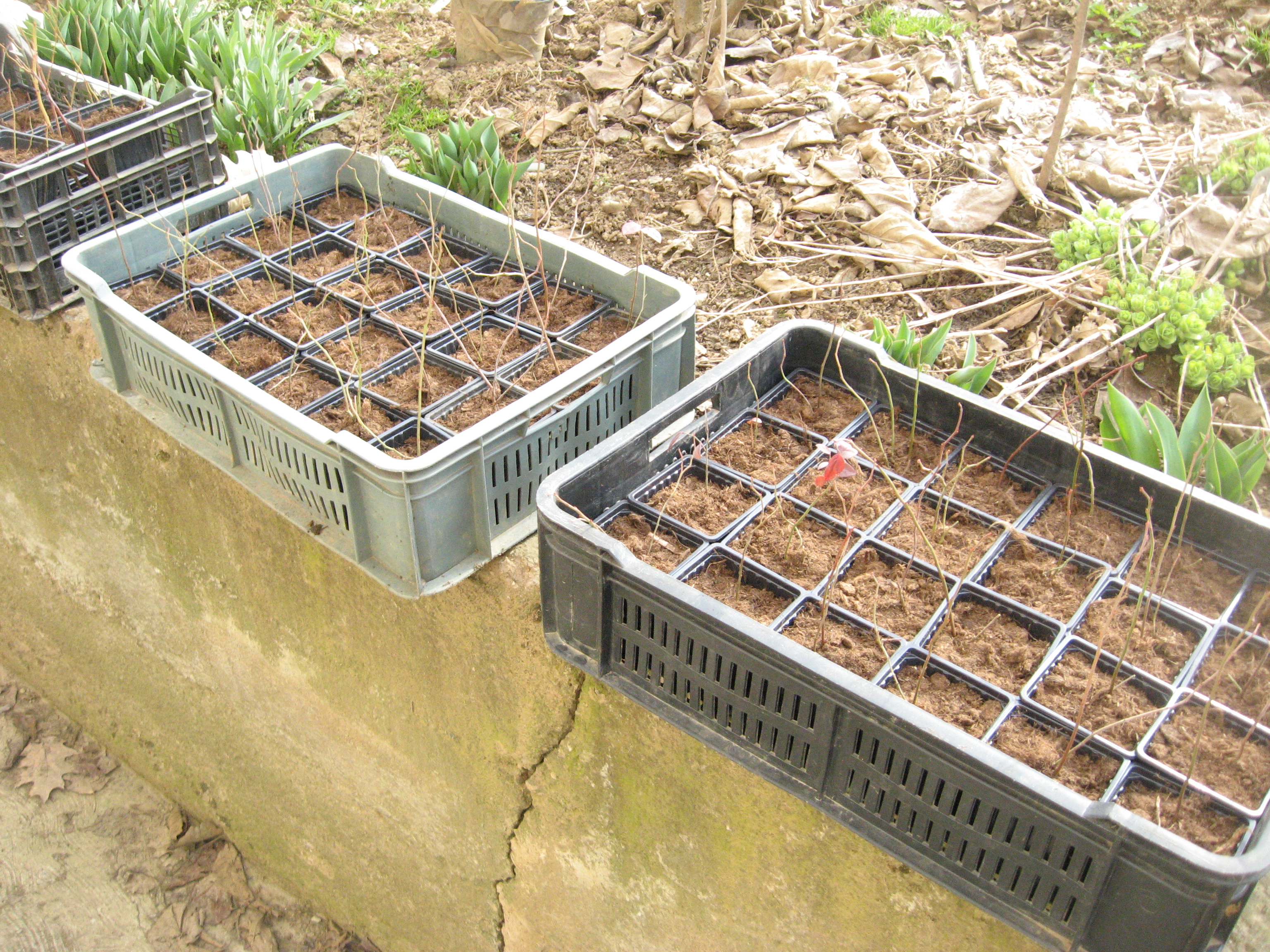 Stare sadnice koje sam povadio ja posadio po istom principu u vece saksije i vrece. Lake su za pomeranje pa za sada ih neka tu gde su .