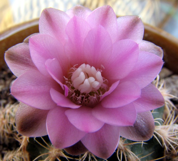 Ovo je Gymnocalicium bruchii, raste u koloniji i ima divan cvet: