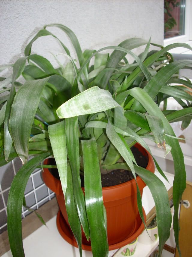 A ovo je jedan ,,matori,, primerak Billbergie nutans (ako se ne varam) koje me svaki put pokasapi kada ga presađujem ili iznosim napolje...