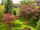 Crveni javor, ukrasna jabuka i svasta u pozadini.