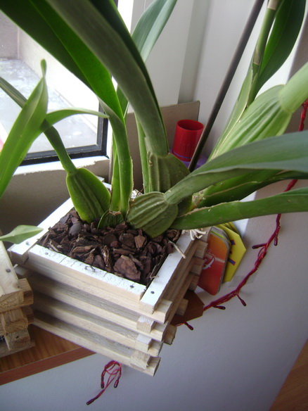 ja sam mini Dendrobijum phalaenopsis posadio u ovu korpicu koju mi je otac napravio od drvenih letvica (duzina svake letvice je 15 cm a precnik 1 cm). dno korpice je isprepletano plastificiranom zicom. posle precvetavanja dendrobijuma, presadio sam ga u korpicu. kasnije je krenuo novi izdanak, koji je trenutno duzine oko 20 cm... jedino, uvek je ispod korpice posuda sa vodom a korpica je zakacena strunom za plafon. zalivam je isto kao i sve orhideje, potapanjem u vodu. samo, ispadne po neko parce kore, ali vratim posle... moja iskustva su dobra, za sada... |
