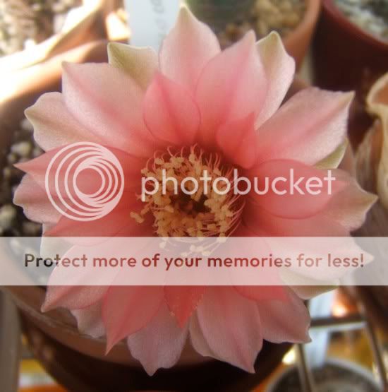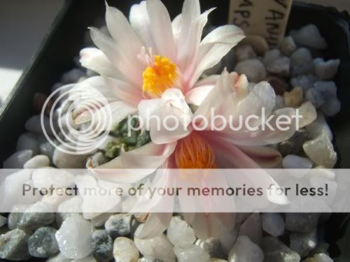 Ariocarpus kotschoubeyanus albiflorus koji je kupljen sa pupoljcima tako da njegovo cvetanje nije moja zasluga.