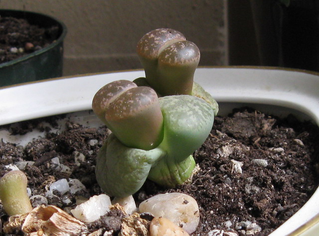 Evo vratio sam se  . Moje jedinče litopsa počeo je opet da se presvlači. Prvi put se presvlačio u martu. Očekivao sam da će sad da cveta ali ništa od toga. Izgleda da mu smeta ''prolećna garderoba'' pa bi da se ''presvuče u letnju''. Da li je to normalno za ovaj period? Ili sam negde pogresio? Šta sad da radim? Da prestanem da ga zalivam i da ostane na suncu? Da ga sklonim sa sunca u hlad? Da ga normalno zalivam kao da je sve u redu?Pomagajte!