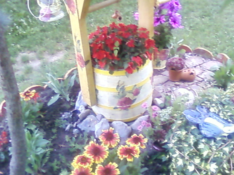 Uh kako lepo izgleda,kao da se polava nije ni desila.Zaista si lepo sve skockala,bunar baš upada u oči i biljke oko njega.
