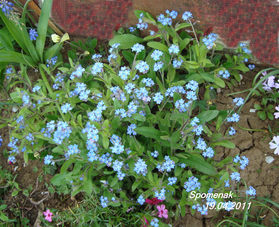Imam i spomenak i nezaboravak, biljke su različite ali im je cvet veoma sličan. Nezaboravak mi je plavi mada se ove godine pojavio i roze (sam od sebe).