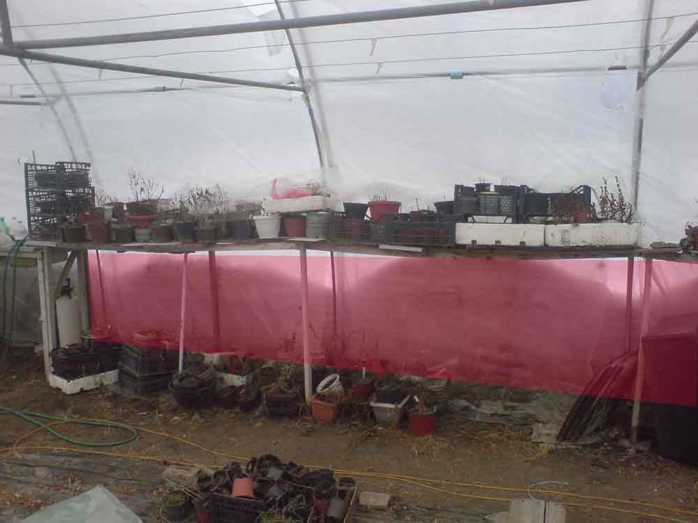 Sutra hocu da postavim unutar plastenika grejnu cebad za rasad i pocnem sezonu (probao sam unutar kuce, nije islo). Imam celom duzinom plastenika ove police koje su na oko 120cm od tla (zaboravite ove proslogodisnje saksije koje se vide na slici). Izmedju rebara plastenika je 2m i dupli je najlon.