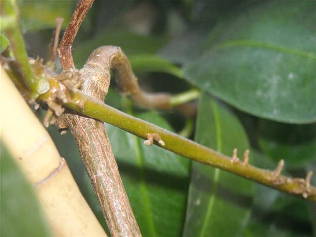 | Nisam ali cu se sjutra potruditi. Njega ima samo na starijim drvenastijim granama uz "zglobove" |
