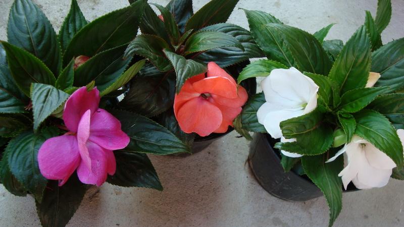 Impatiens New Guinea, bijela, narančasta i lila
