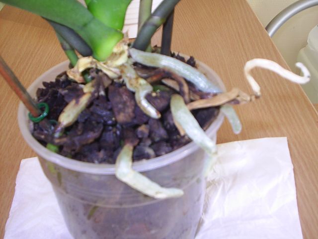 Tvoj kad otcvjeta trebas presaditi jer u svasta sade orhideje (da ne povjerujes  ), ako ti se cini da treba vecu teglu, uzmi samo 1-2 broja vecu.