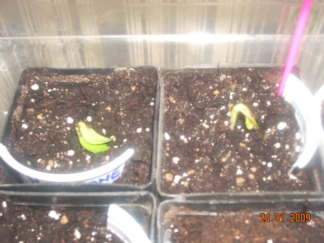 Cudna je to biljka. Meni je bila lepo nikla i poterala dva listica i odjednom joj je prestala svaka aktivnost. Pogledam joj koren i imam sta da vidim -krenuo da truli /od cega nemam pojma, verovatno prezalivanje/. Odsecem skroz taj uljigavljen deo koji je poceo da truni i umocim u fungicid pa ponovo zabodem u zemlju. Proslo je desetak dana, nikakvih promena nije bilo da bi nakon toga krenula sa novim listom. Znaci da je prosto ozivela. Evo slike