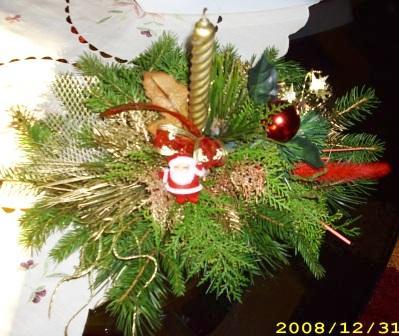 Kod mene novogodisnje ludilo jos uvek traje. Postavljam slike dva aranzmana od sinoc. Jedan sam radio sa tujom i malo jelke u koje sam umetnuo korice od cimeta i lepo mirise. Drugi sam pravio na zmijskoj travi koju sam povezao uz pomoc tanke zice, bozikovinu i cvet brsljena sam obojao u zeleno, dodao jedan ukras i nekoliko bisercica.