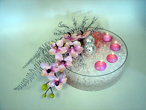 Dve ili vise casa mogu posluziti kao osnova za novogodisnji aranzman. Grane od jelke ili nekog drugog zelenila bi trebale da povezu case a cvece uz pomoc zice saviti u zeljenu formu. Ako bi se u casu ubacila koja kriska limuna bilo bi zanimljivo.