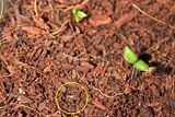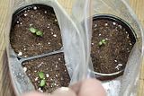 Prilično čudno izgledaju sejanci, stabljika im je skoro crna! Još nisu odbacili semenu opnu, nadam se da će uskoro